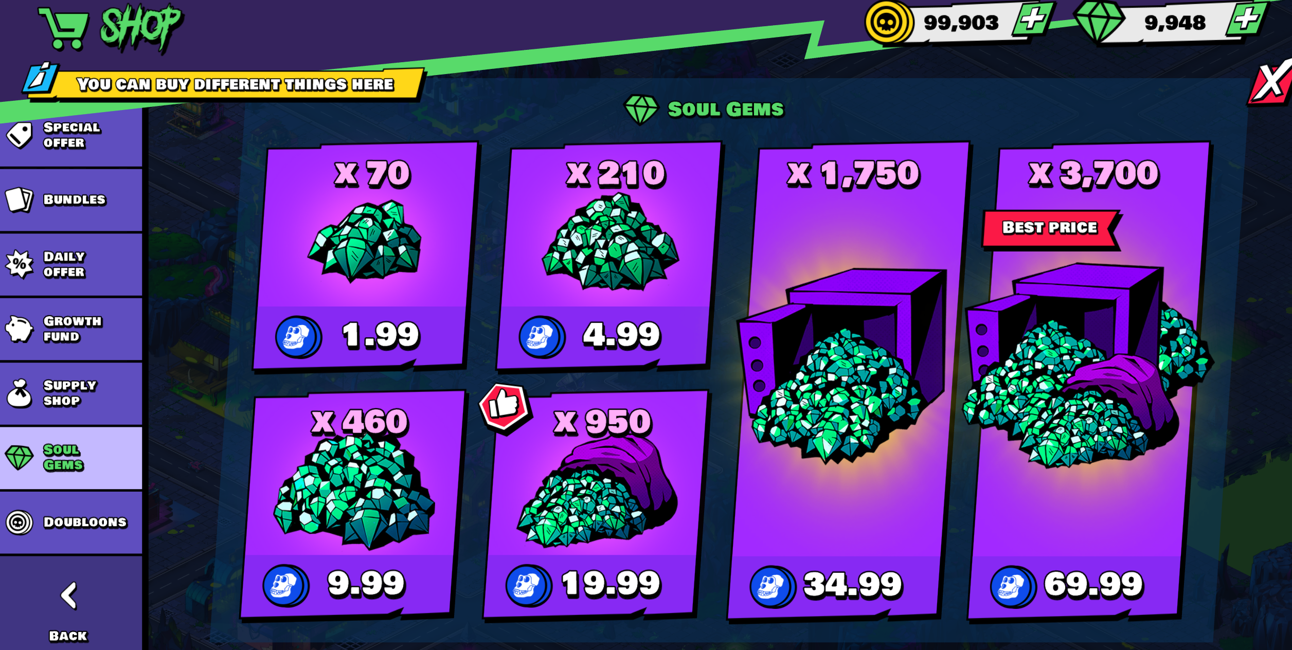 The Shop allows players to use on-chain currencies, like ApeCoin, Sol, Matic and USDC to purchase game items and off-chain currencies.